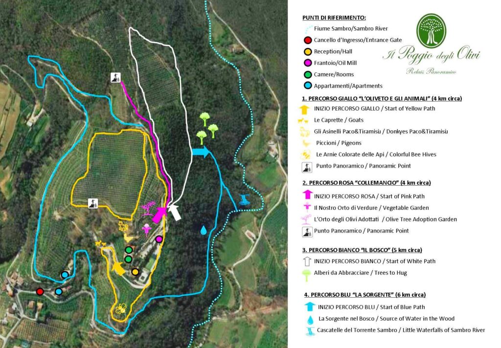 Per un’esperienza cognitiva, sensoriale ed emozionale i nostri ospiti si possono dedicare ai percorsi giornalieri che si snodano attraverso i suoi magnifici territori con partenza proprio dal Poggio degli Olivi! I nostri sentieri sono adatti a tutti (esperti, amatori e cicloturisti) e caratterizzati da natura selvaggia e vegetazione folta, ombreggiata e ricca di acque.